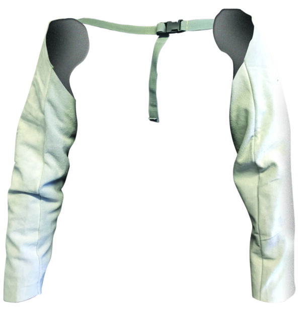 The sleeves are connected across your back with a fully adjustable strap/buckle attachment.
