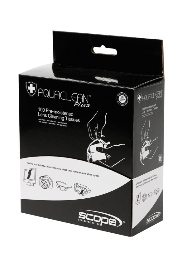 New improved formula with added anti-bacterial protectionThe best way to clean eyewear is with mild soapy water. Alternatively use Aquaclean Plus pre-moistened wipes, it?s like carrying mild soapy water in your pocket. Tested safe on all optics and performance certified by Colts Laboratories