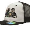 Structured 6 Panel Flat Peak Cap with Mesh Back and Plastic Strap