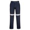 100% Pre shrunk cotton drill, mid weight Straight Leg Pants with tape. Traditional style pants with a tighter fit around the thighs, internal back pockets and an adjustable waist. Unique construction of reinforced stress points, providing strength and comfort for the wearer. Plastic zipper and plastic button closure. Reflective tape around the knee.