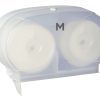 Wrapped toilet tissue dispensers offer a practical and durable roll dispensing solution. Ensure your bathroom is always fully hygienically stocked. Compatible with the complete toilet tissue range with a 2 roll capacity and easy switch over mechanism. These dispensers are available in 20mm or 40mm core size options to suit a variety of roll types. Available in a translucent white or black colour for easy viewing.
